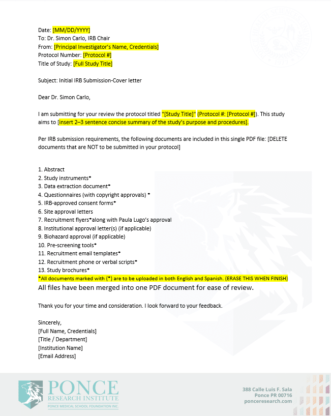 IRB Cover Letter Templates * (New!)